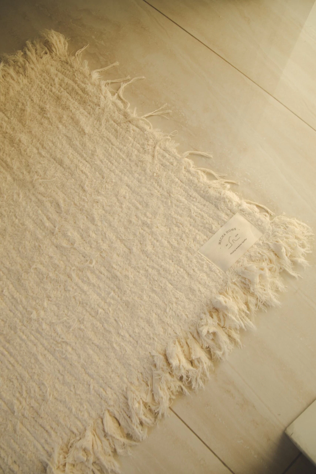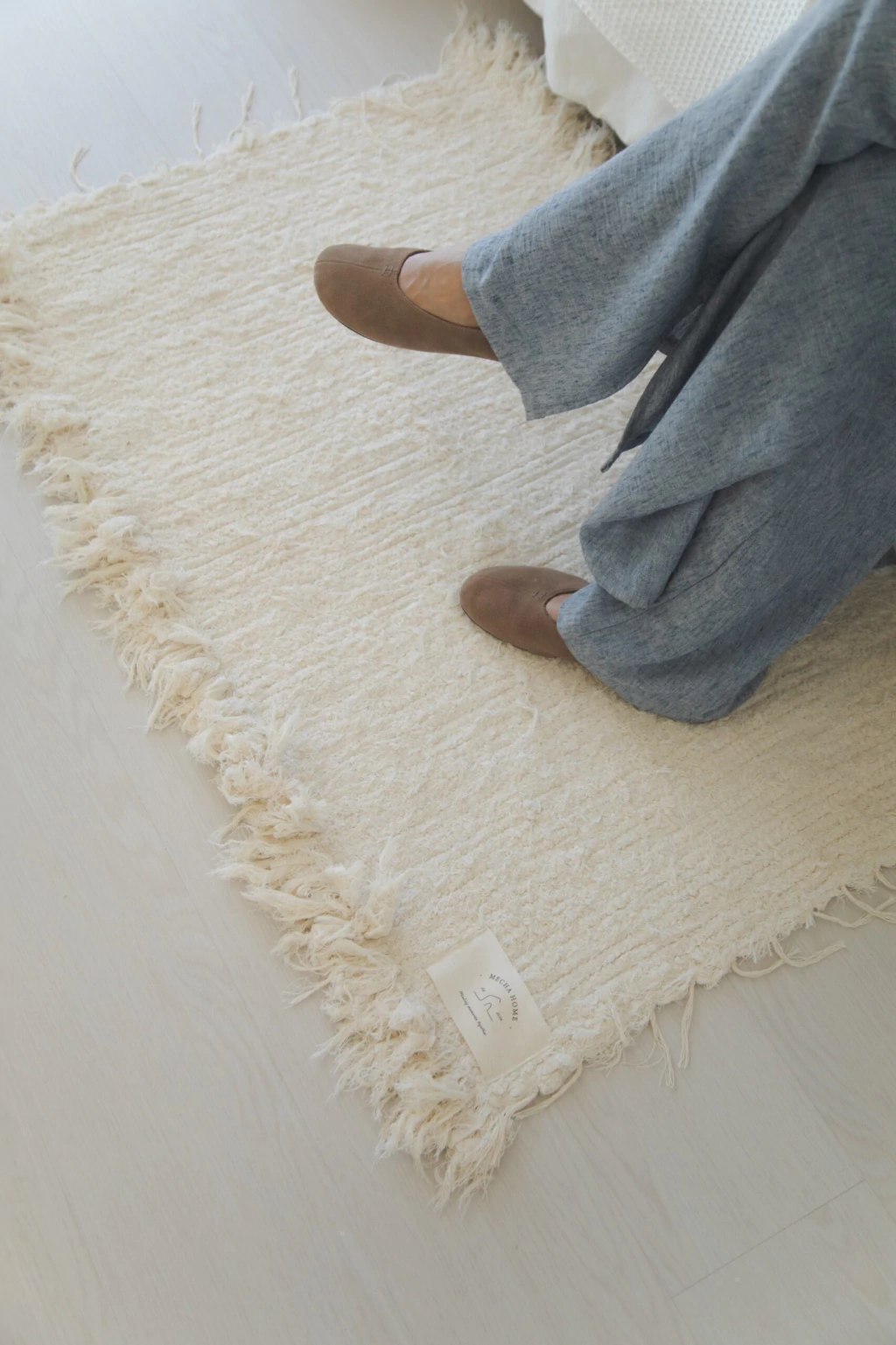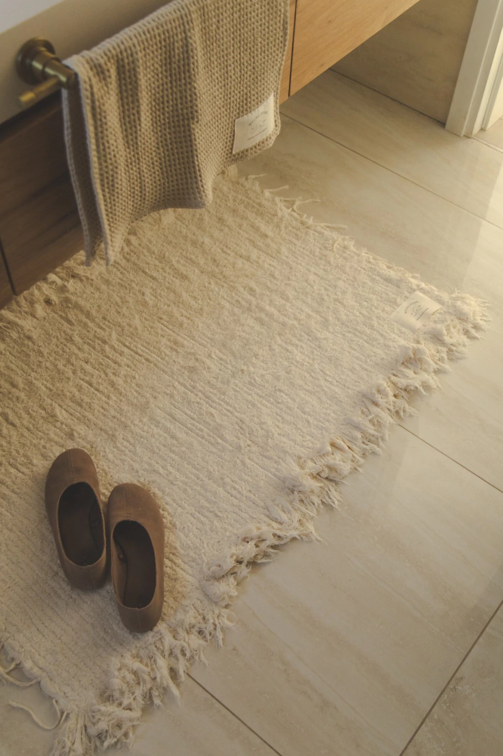 Alfombra rectangular rústica con flecos en los laterales apta para lavarropas