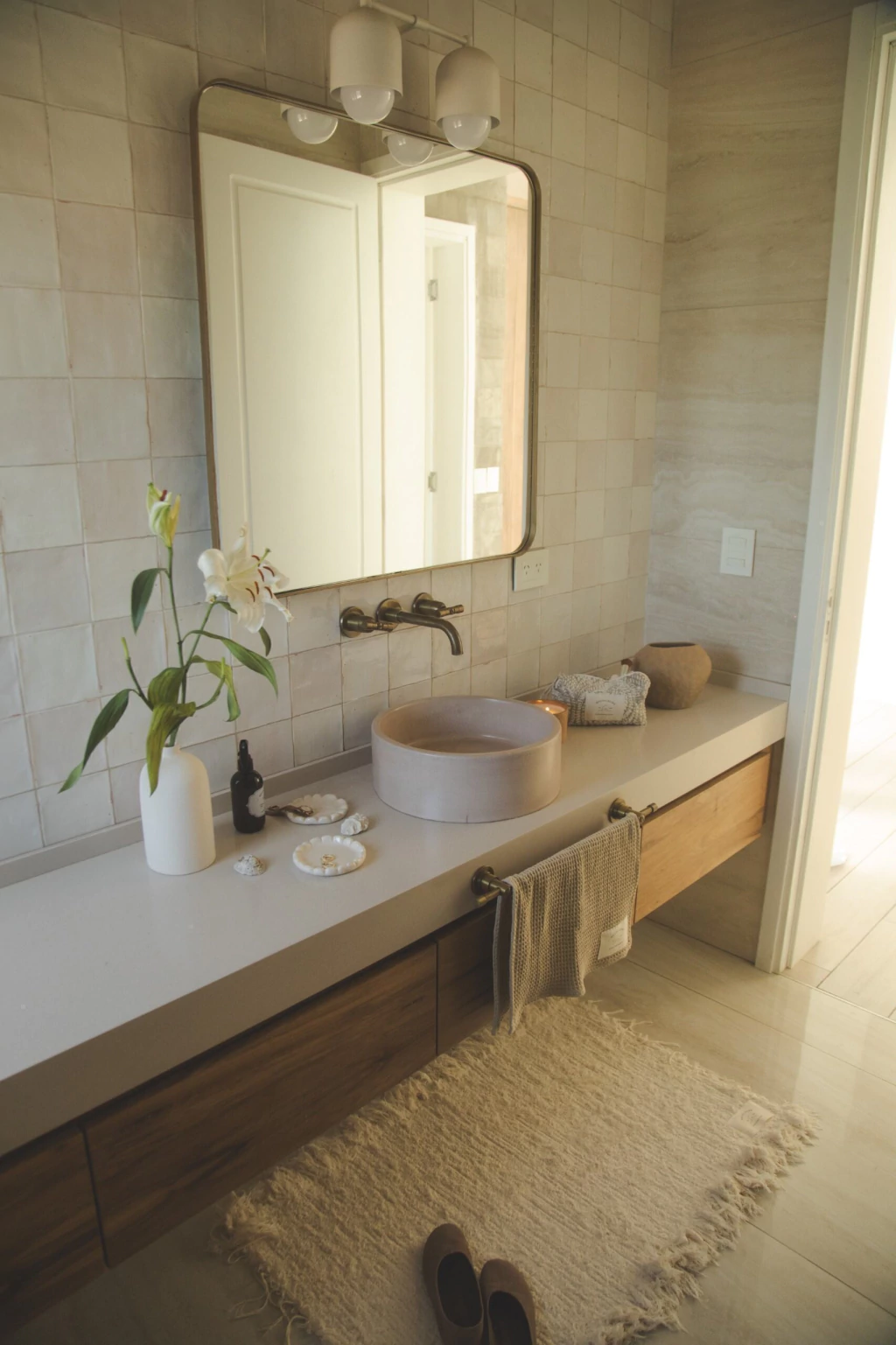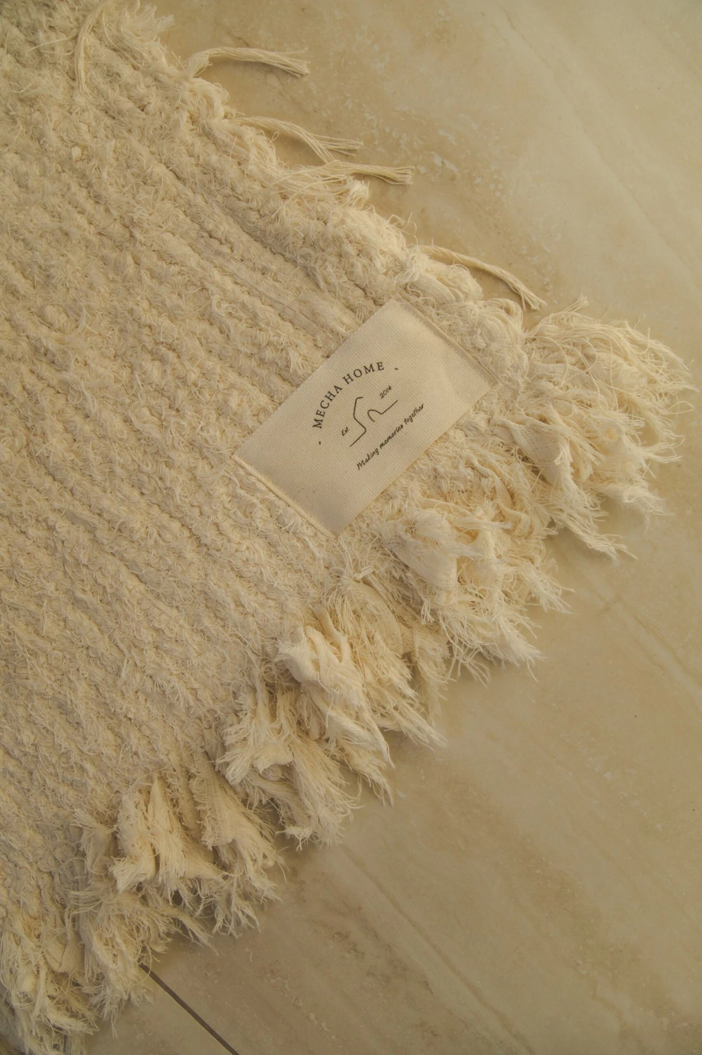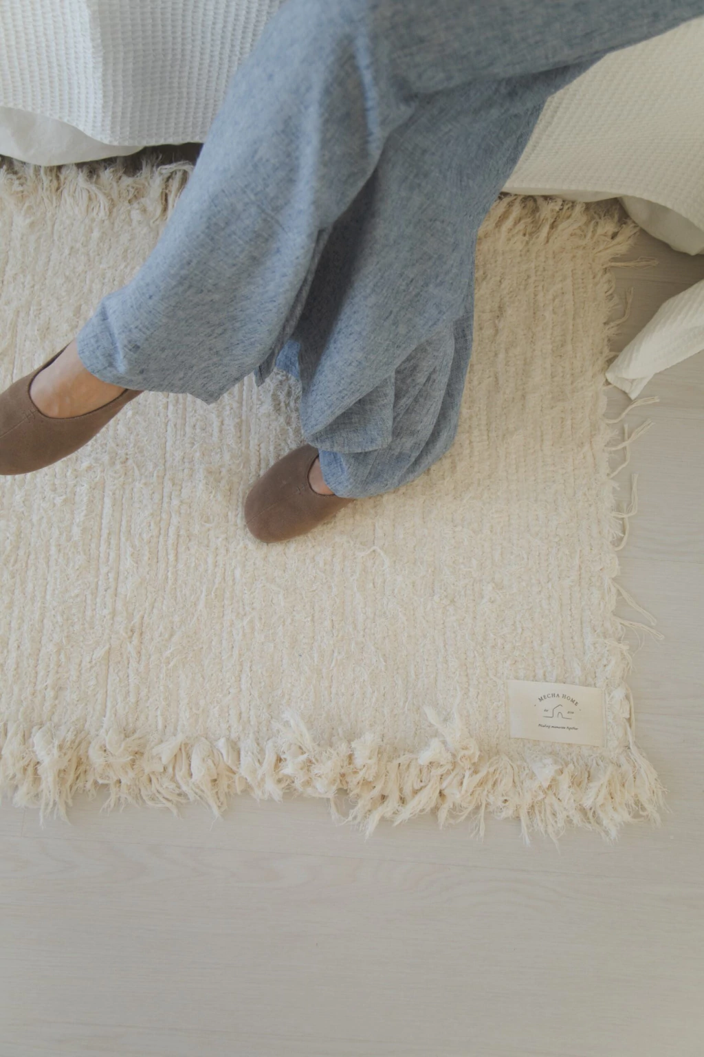 Alfombra rectangular rústica con flecos en los laterales apta para lavarropas